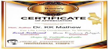 Dr.K.K.Mathew was selected as one of the best ten modern rising poets by Modern Poet's Poetical Tone in 2018
