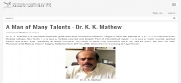 Dr. K. K. Mathew is a renowned physician, graduated from Trivandrum Medical College in 1968 and passed M.D. in 1973 at Maulana Aza